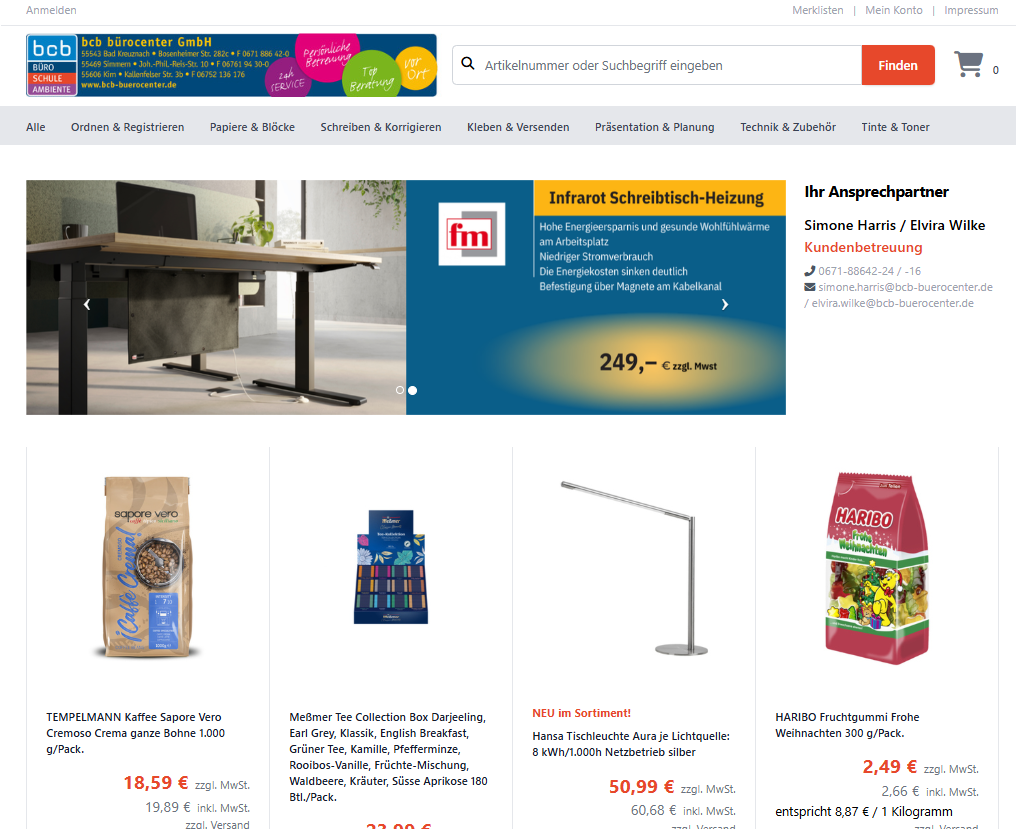 Falls Sie es mal nicht zu den Öffnungszeiten schaffen, bieten wir mit unserem starken Partner Soennecken selbstverständlich auch einen Online-Shop an, der Ihnen einen Einkauf an 24 Std/Tag, 7 Tage/Woche ermöglicht. Bestellen wird dadurch ganz einfach und komfortabel. Suchbegriff eingeben oder in der Kategorienliste das gewünschte Produkt aussuchen, Menge eingeben und mit einem Mausklick in den Warenkorb legen. Öfter benötigte Artikel werden in der Merkliste gespeichert und lassen sich somit ohne Suchen sofort wieder aufrufen. Ist der Warenkorb gefüllt, fehlt nur noch die kostenlose Zugabe, die je nach Auftragswert ausgewählt werden kann. Unser Online-Shop ist immer aktuell. Sortimentsänderungen und -ergänzungen werden über Nacht aktualisiert. So sind Sie immer auf dem neuesten Stand. Probieren Sie´s einfach mal aus.